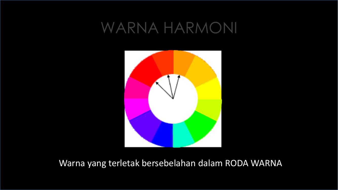 Sewarna dapat dihasilkan dengan campuran satu warna dengan hitam bagi mendapatkan kesan. Dalam menyusun harmoni warna kita menggunakan colour wheels atau lingkaran warna, seperti gambar dibawah ini: Harmoni adalah keseimbangan atau keselarasan kombinasi yang mencakup seluruh bagian.warna adalah unsur penting dalam sebuah design. Harmoni warna analog menerapkan penggunaan warna yang saling berdekatan searah jarum jam. Warna merah adalah warna yang beraura kuat, memberi arti gairah dan memberi energi untuk menyerukan terlaksananya suatu tindakan. Sebab, ini merupakan campuran antara warna primer dan sekunder. Warna tersier adalah campuran salah satu warna primer dan sekunder, contohnya warna coklat. Ini melambangkan pertumbuhan, harmoni, kesegaran, dan kesuburan. Ketahui pengertian dan peran pentingnya di sini. Warna harmoni dapat menimbulkan kesan perasaan selesa dan tenang. Merah yang merupakan warna darah adalah simbol kehidupan, dan itu adalah warna yang dipakai oleh pengantin wanita di cina. Lengkungan kuning mcdonald's adalah simbol yang diakui secara global. Berikut merupakan gambar dari lingkaran warna:
